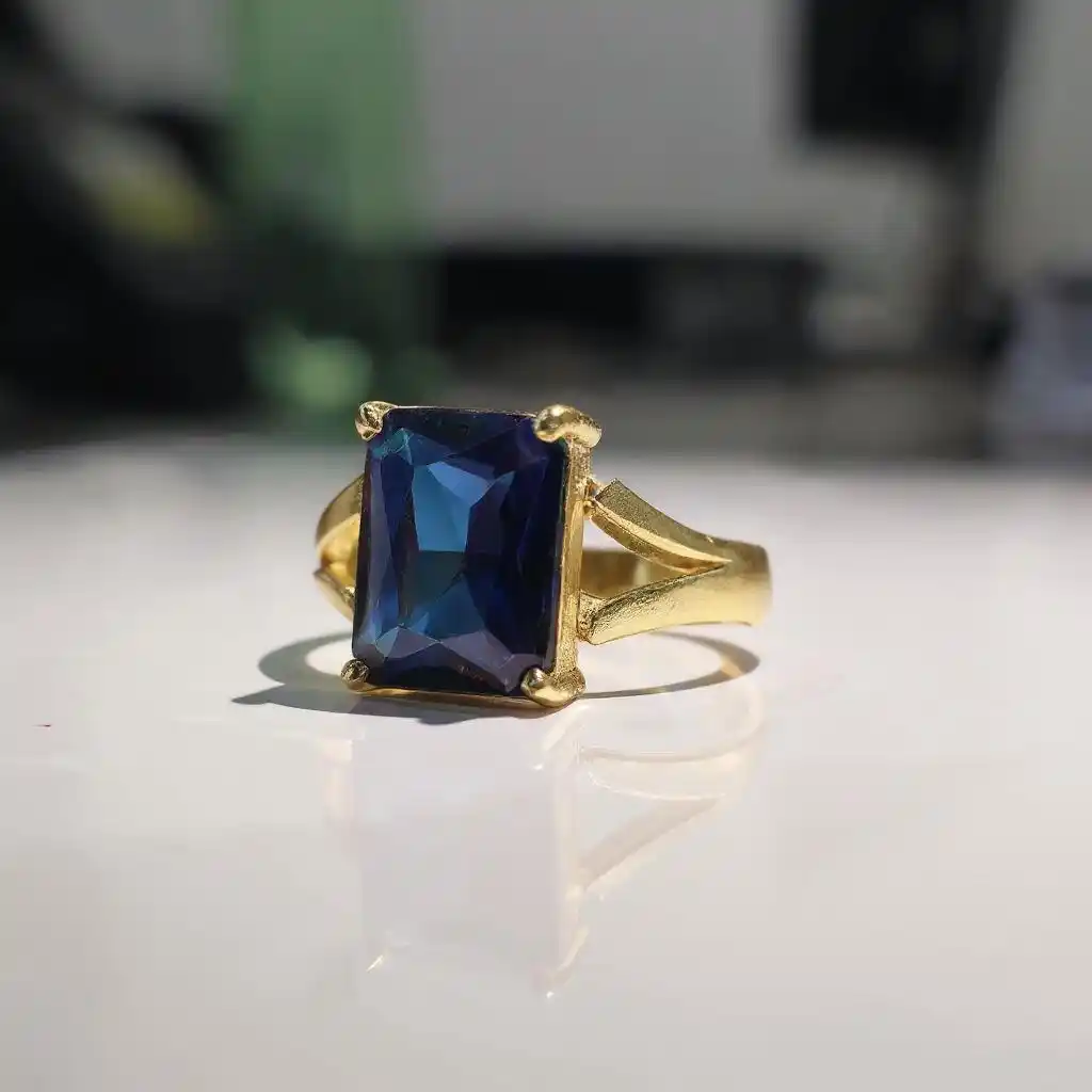 AAA++ Quality Natural Natural Blue Sapphire Neelam Gemstone Ring Gold Plated for Women's and Men's